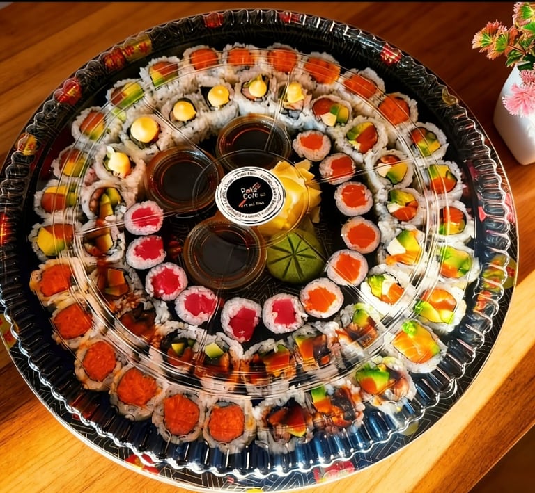 Sushi, Poke Bowls, Sandwich, Burritos, Soup, Salad, Punch, Lemonade, Coffee, Milkshake, Latte...