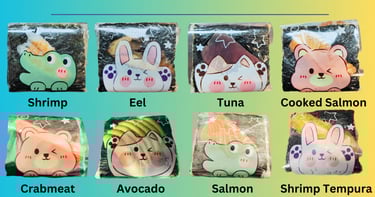 Sushi, Poke Bowls, Sandwich, Burritos, Soup, Salad, Punch, Lemonade, Coffee, Milkshake, Latte...