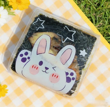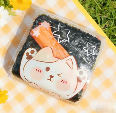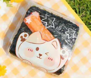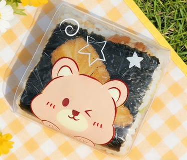 A seaweed-wrapped sesame rice ball topped with a slice of tuna. Inside with fresh Tuna and Avocado with spicy mayo and chef's special sauce.