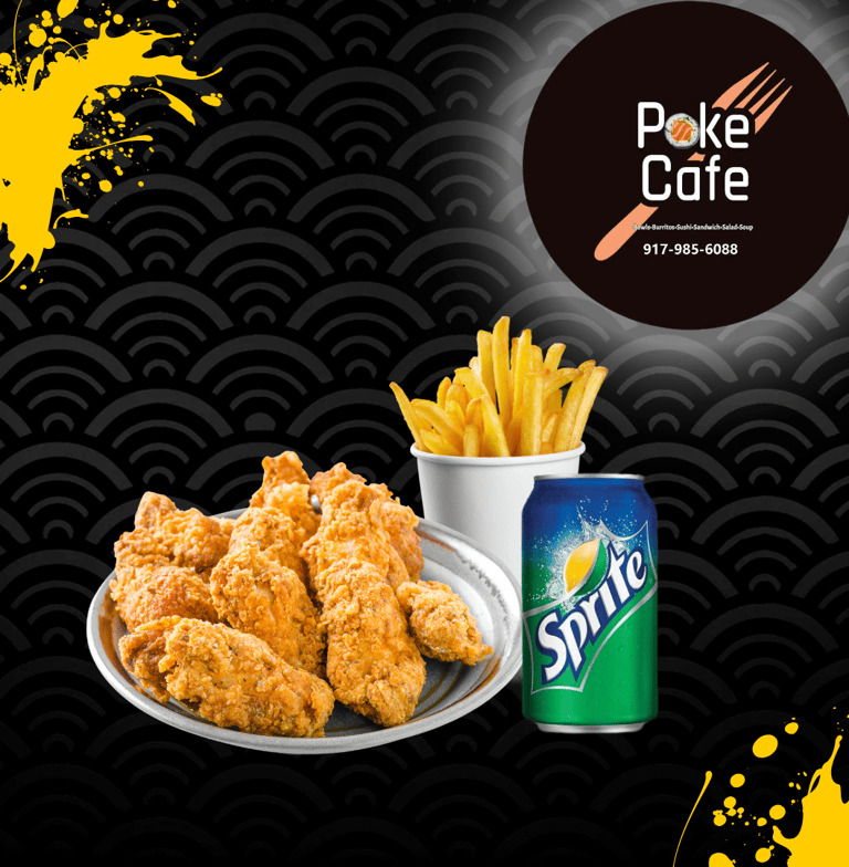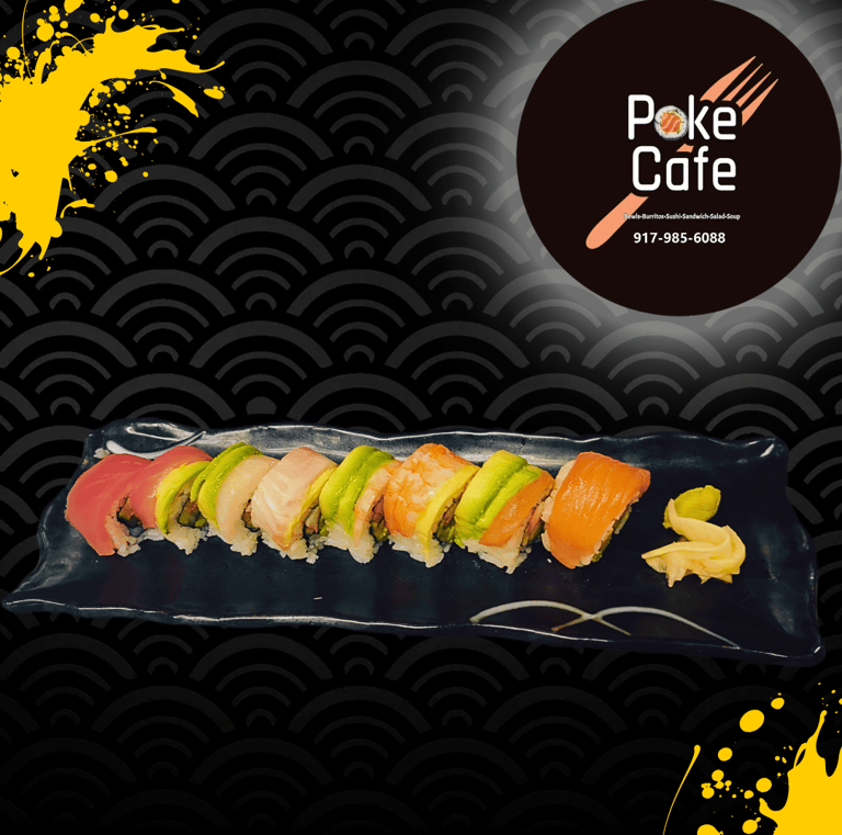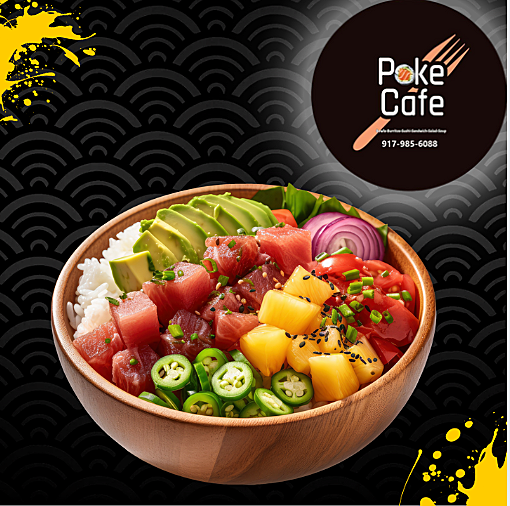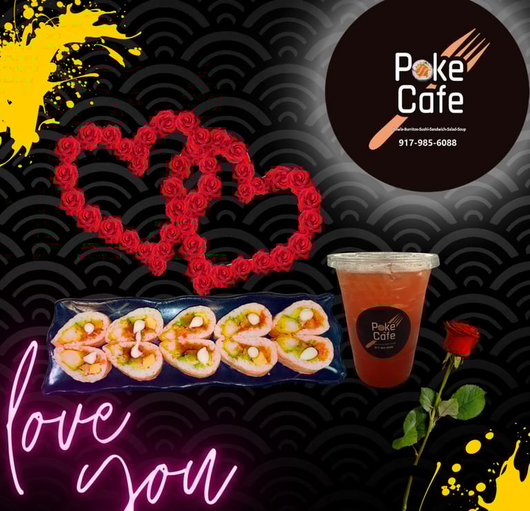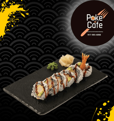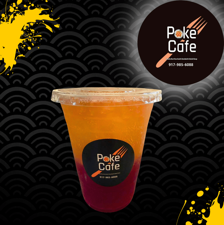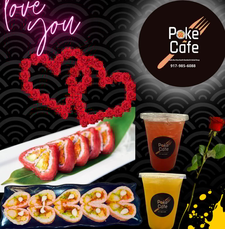 Sushi, Poke Bowls, Sandwich, Burritos, Soup, Salad, Punch, Lemonade, Coffee, Milkshake, Latte...