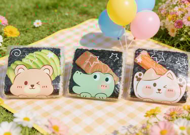 A seaweed-wrapped sesame rice ball topped with a slice of avocado. Inside with fresh avocado, spicy mayo and chef's special sauce.